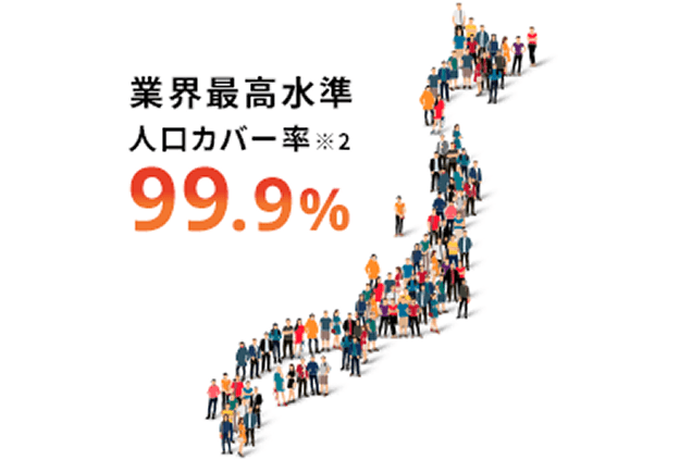 - 2023年5月時点。日本全国の通信エリアでデータ高速無制限になるのは2023年6月以降。人工カバー率は、国勢調査に用いられる約500m区画において、50%以上の場所で通信可能なエリアを元に算出。